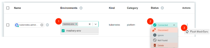 3. If MeshSync is actively running in your cluster, clicking the "Flush MeshSync" button will update MeshSync with the latest data, ensuring it matches the current state of your cluster. This ensures that MeshSync’s data is refreshed and accurately reflects the current state of your cluster’s infrastructure and resources.